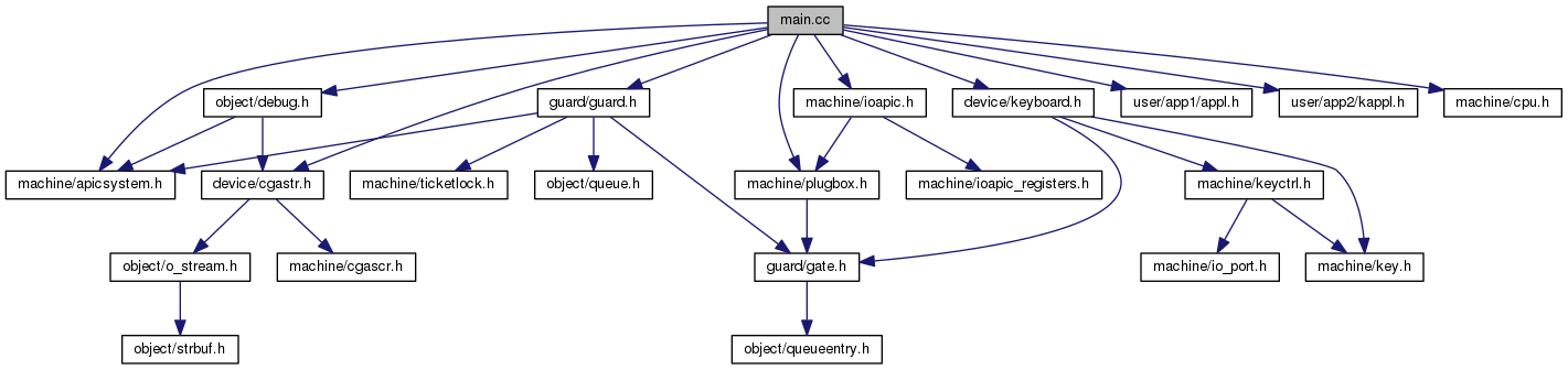 #include "machine/apicsystem.h"#include "device/cgastr.h"#include "object/debug.h"#include "user/app1/appl.h"#include "user/app2/kappl.h"#include "machine/ioapic.h"#include "machine/cpu.h"#include "machine/plugbox.h"#include "device/keyboard.h"#include "guard/guard.h"