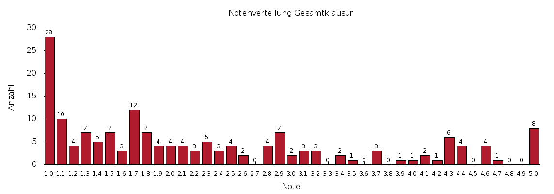 Auf dieser Seite finden Sie einige Statistiken zum Ergebnis der Klausur(en).