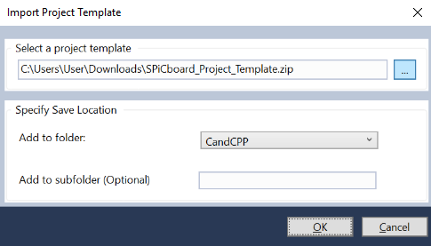 - Im neuen Fenster bei "Select a project template" auf "..." klicken, in diesen Ordner navigieren und die