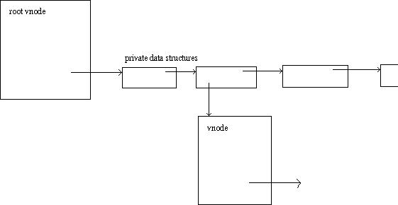 Das Filesystem-Modul bildet den Verzeichnisaufbau mit internen Vnodes ab. Zu diesem Zweck existiert eine eigene Datenstruktur, die in den Vnode eingehängt wird. Die Verzeichniseinträge sind als verkettete Liste solcher Strukturelemente realisiert.