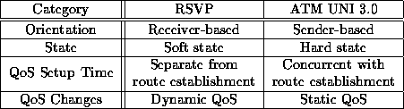 The differences between the reservation models of RSVP and ATM (UNI 3.0) signalling are listed in Table