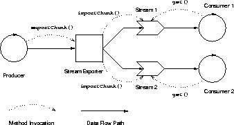 an associated StreamExporter object: a Producer calls the exportChunk() method of its