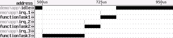 When executing the application, an initialization phase programs all allocated timer cells according to the actions they have been assigned to and initiates their operation along with starting up the application. During run time, the dispatcher table is then maintained solely by the independent operation of these timer cells and does not require any software intervention apart from the regular interrupt handlers dispatching tasks whenever they are triggered.